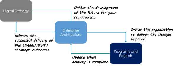 Enterprise Architecture enables the translation of the business vision and strategy to achieve the enterprise's future state through a process of uplifting the enterprise capabilities of people, process, information and technology.